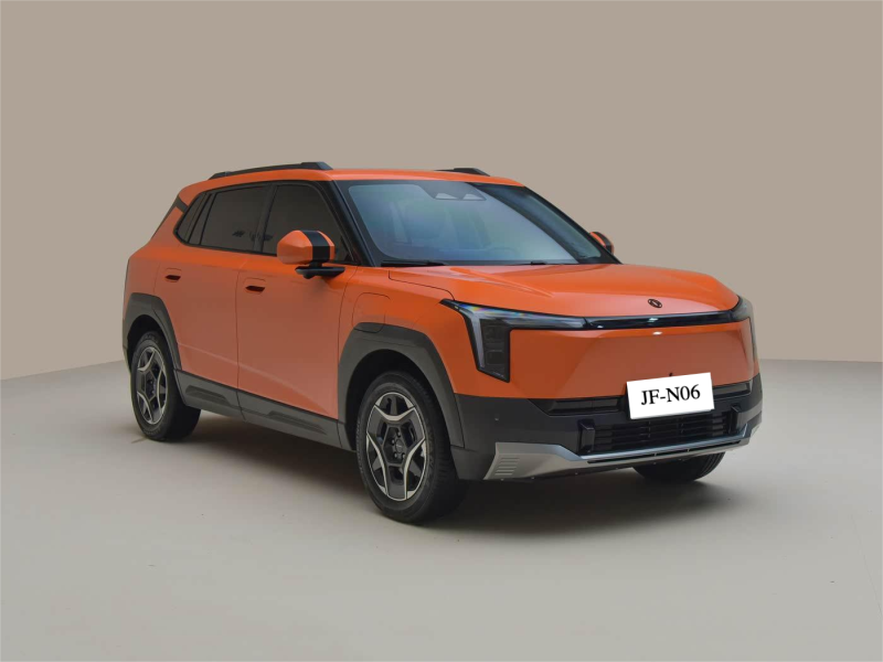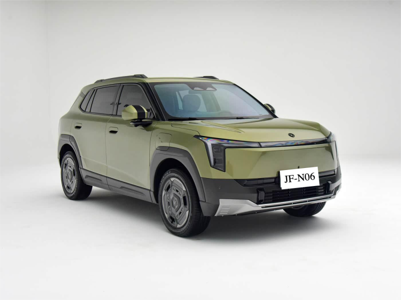 The JF-N06, a pure electric compact SUV, embodies the "Magic Cube" design philosophy, blending futuristic aesthetics with practicality. Its angular front fascia features a full-width LED light strip and sharp body lines, complemented by dual-tone mirrors and a floating roof design. Available in five vibrant color options (e.g., Nebula Blue, Aurora Silver), the vehicle exudes youthful dynamism. With dimensions of 4,306mm (L) × 1,868mm (W) × 1,645mm (H) and a wheelbase of 2,715mm, it offers a cabin space that surpasses its class, including 150mm of rear knee room and a 500L trunk (expandable to 1,300L with fold-flat rear seats), ideal for camping gear or large luggage.